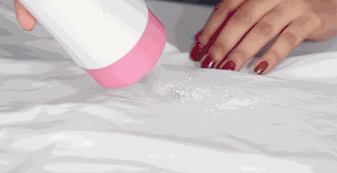在有污漬的地方撒上淀粉和食鹽,涂抹按壓,等幾分鐘淀粉吸收污漬。